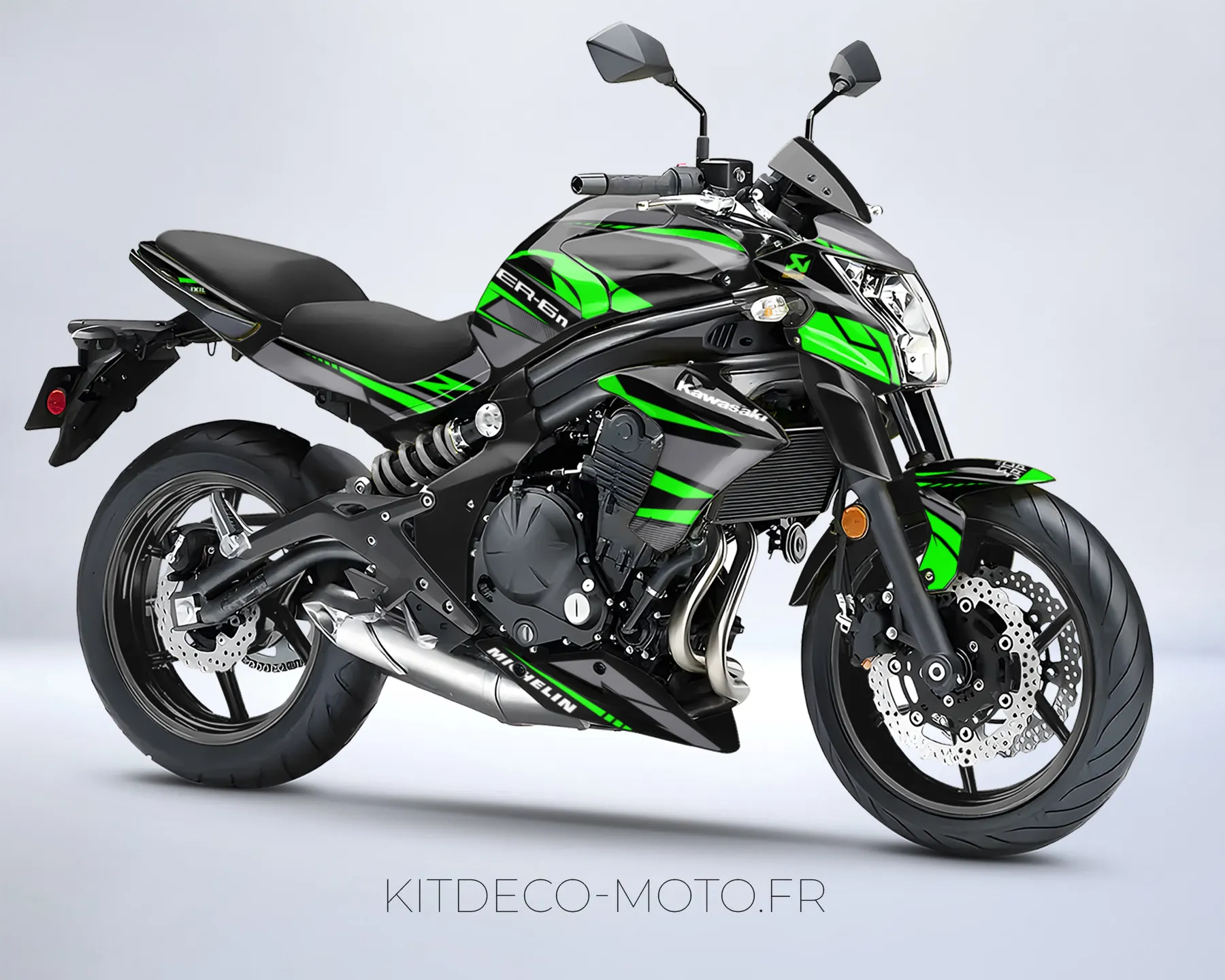 Avec le Kit déco Kawasaki ER-6N – Factory Vert, votre moto devient unique et vous aussi. Alors qu’attendez-vous pour donner du style à votre moto ? 🏍️