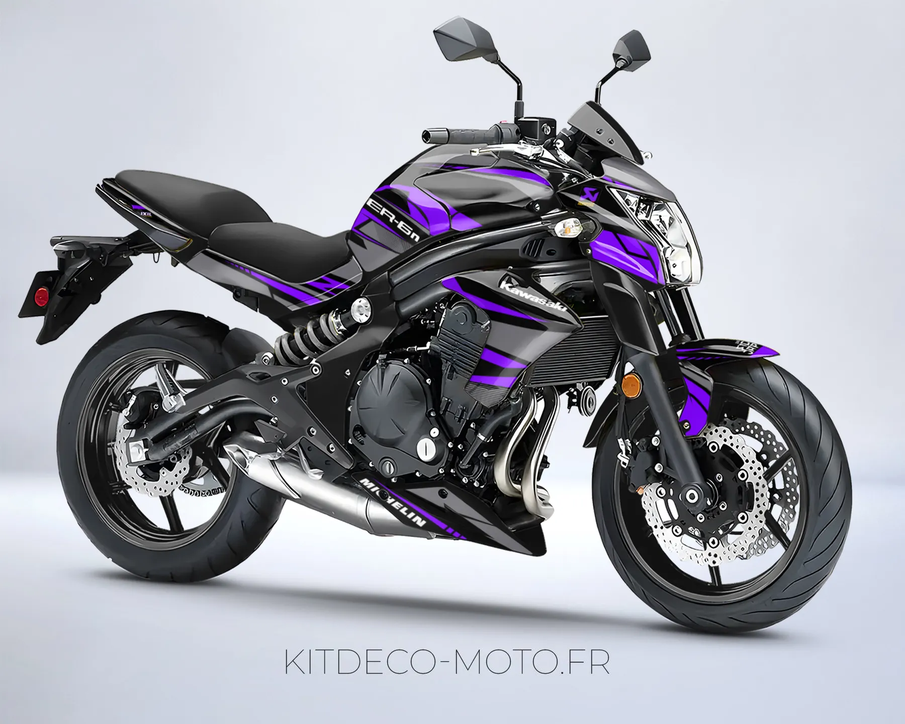 Avec le Kit déco Kawasaki ER-6N – Factory Violet, votre moto devient unique et vous aussi. Alors qu’attendez-vous pour donner du style à votre moto ? 🏍️
