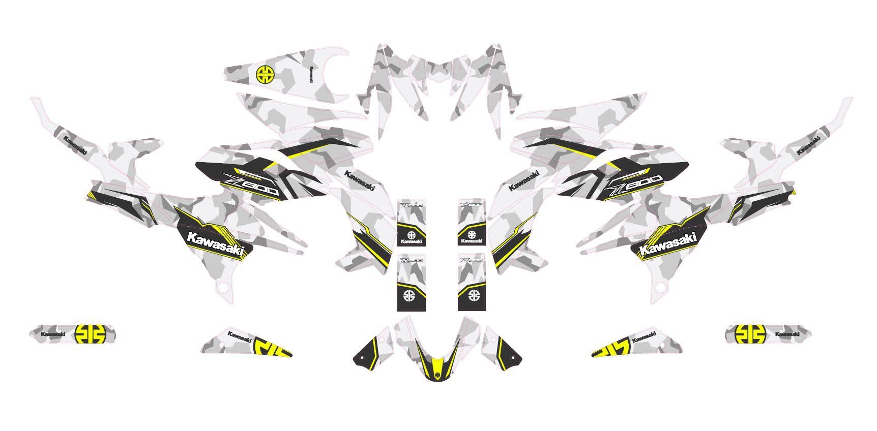 Kit déco Kawasaki Z800 – Camouflage Jaune