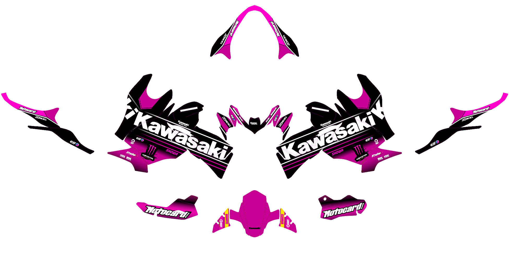 Pour une personnalisation encore plus poussée, vous pouvez customiser votre Kit déco Kawasaki Z900 – Monster Rose avec nos différentes options comme la base du Kit déco, la finition et pourquoi pas ajouter votre pseudo ou bien changer le numéro.