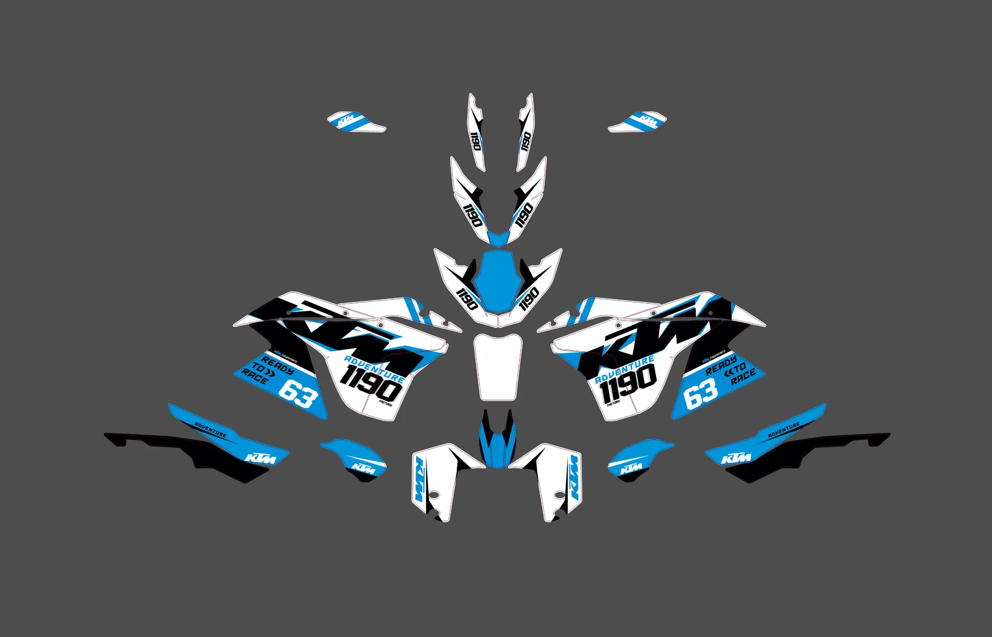 Pour une personnalisation encore plus poussée, vous pouvez customiser votre Kit déco KTM 1050 -1090 -1190 Adventure R – Race Bleu avec nos différentes options comme la base du Kit déco, la finition et pourquoi pas ajouter votre pseudo ou bien changer le numéro.