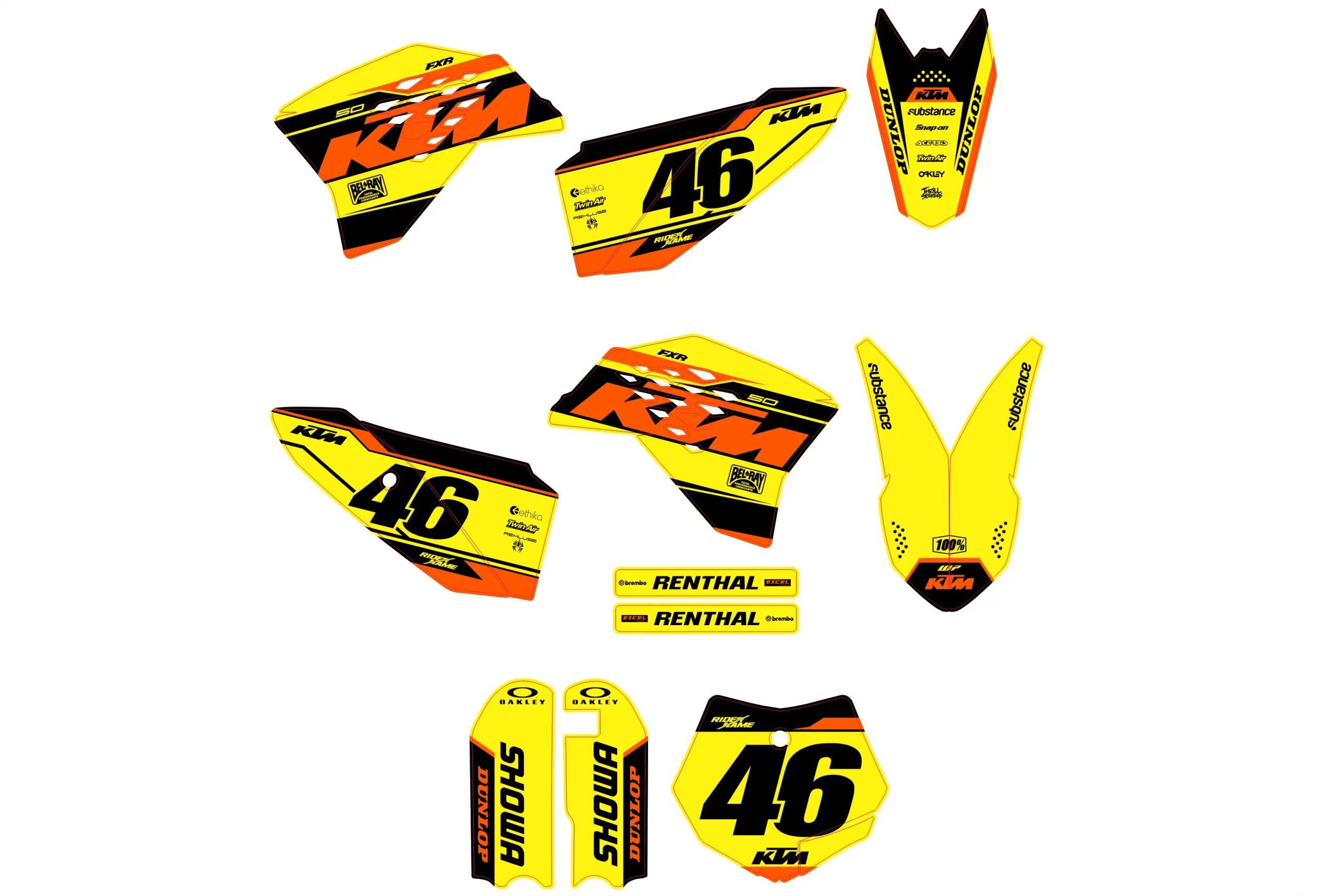 Pour une personnalisation encore plus poussée, vous pouvez customiser votre Kit déco KTM 50 SX (2009-2015) – Race Jaune avec nos différentes options comme la base du Kit déco, la finition et pourquoi pas ajouter votre pseudo ou bien changer le numéro.