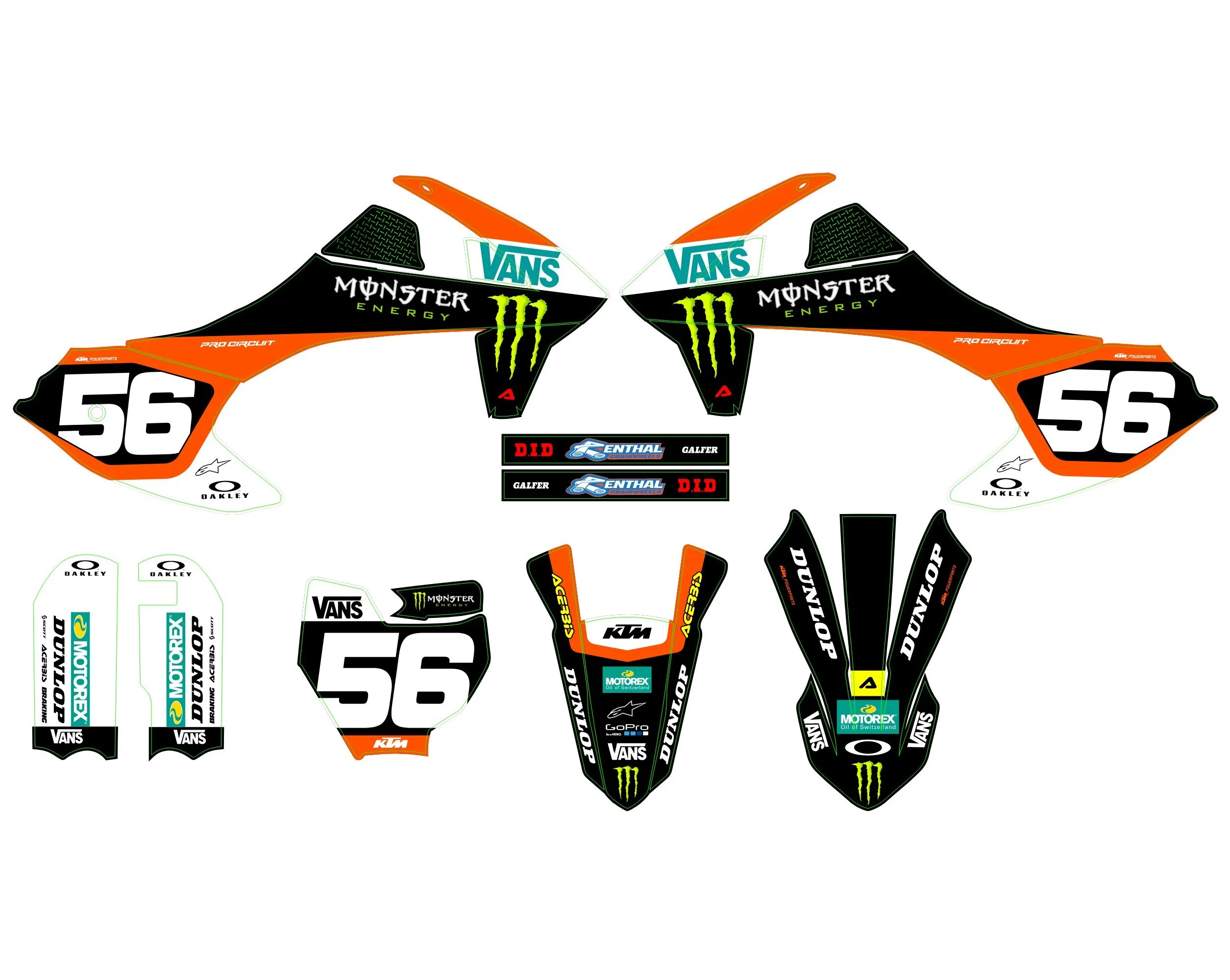 Avec le Kit déco KTM 50 SX (2016-2023) – Monster, votre moto devient unique et vous aussi. Alors qu’attendez-vous pour donner du style à votre moto ? 🏍️