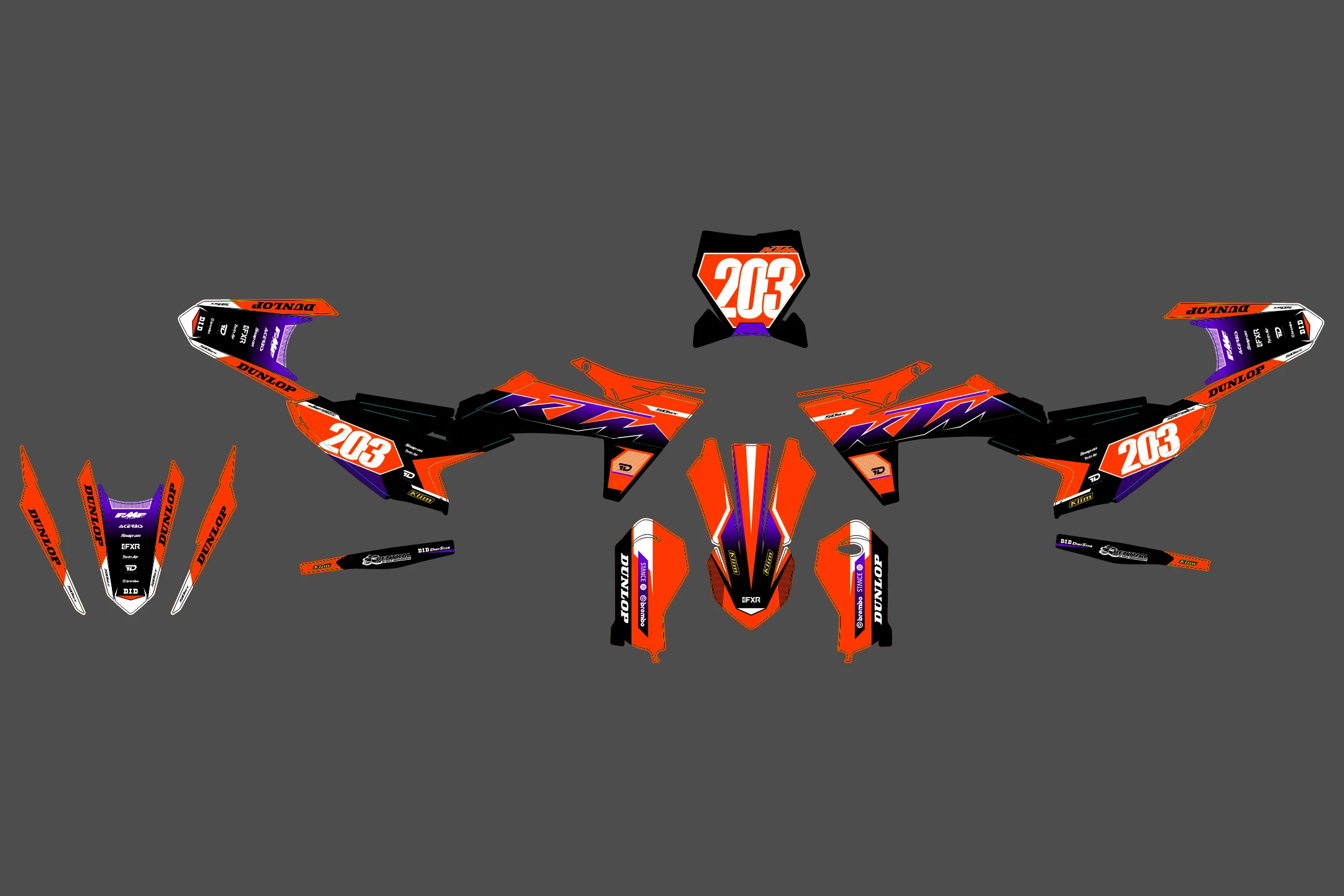 Pour une personnalisation encore plus poussée, vous pouvez customiser votre Kit déco KTM 50 SX (2024-2025) – Race avec nos différentes options comme la base du Kit déco, la finition et pourquoi pas ajouter votre pseudo ou bien changer le numéro.