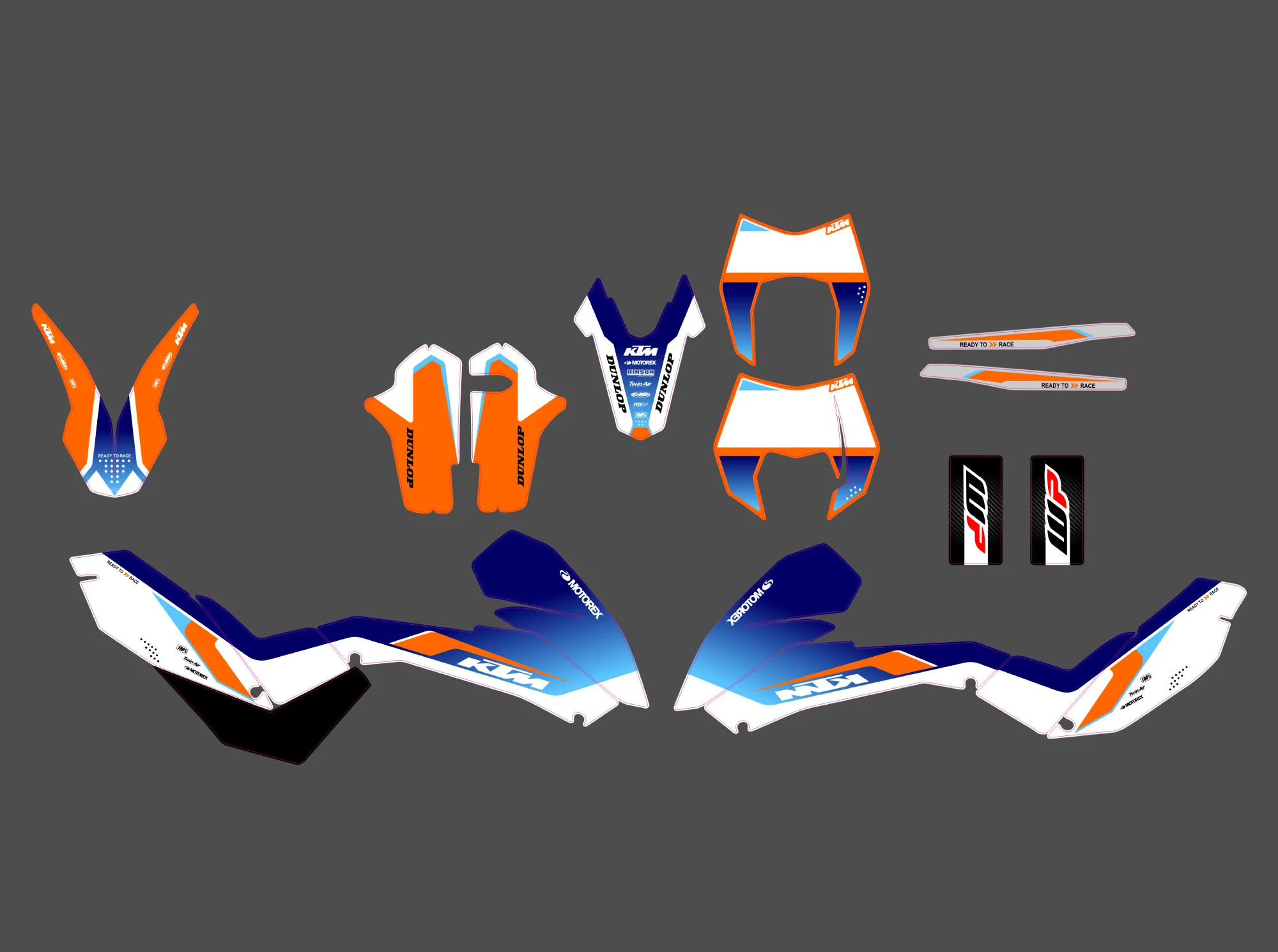 Pour une personnalisation encore plus poussée, vous pouvez customiser votre Kit déco KTM 690 SMC – Ride avec nos différentes options comme la base du Kit déco, la finition et pourquoi pas ajouter votre pseudo ou bien changer le numéro.
