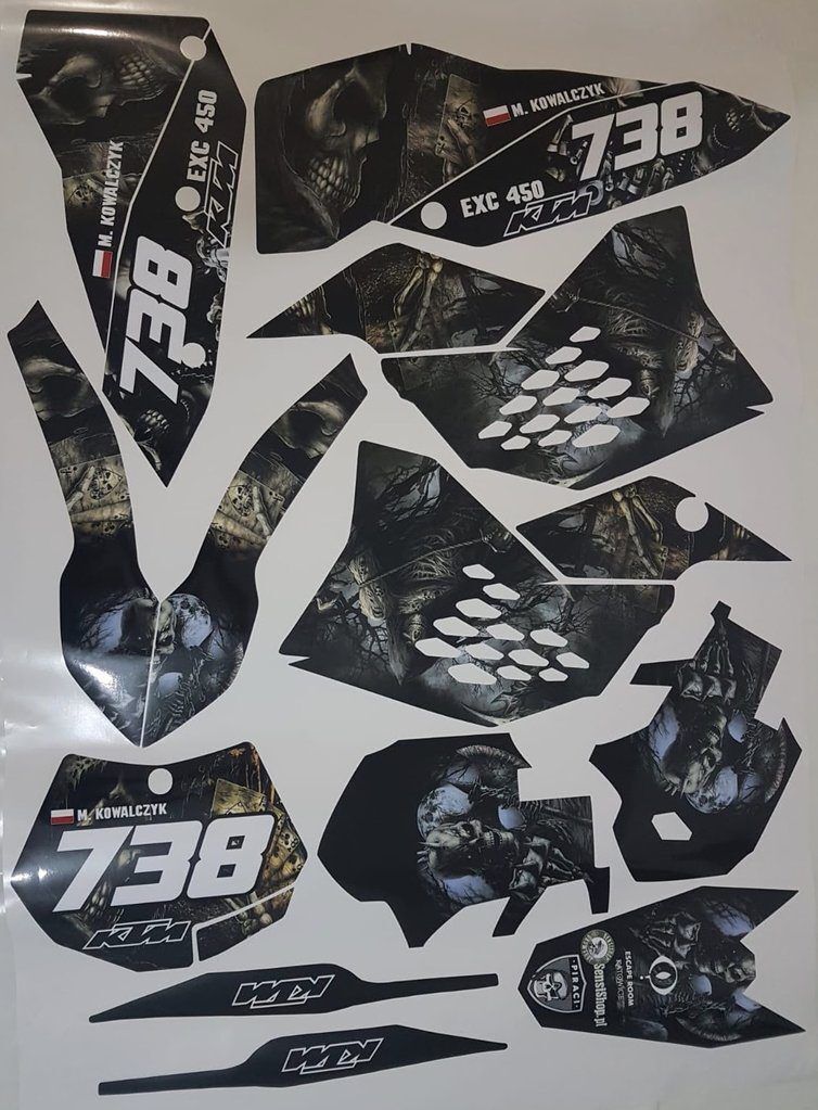 Pour une personnalisation encore plus poussée, vous pouvez customiser votre Kit déco KTM EXC / EXC-F (2008-2011) – Black avec nos différentes options comme la base du Kit déco, la finition et pourquoi pas ajouter votre pseudo ou bien changer le numéro.