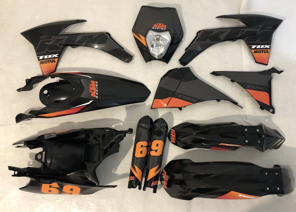 Pour une personnalisation encore plus poussée, vous pouvez customiser votre Kit déco KTM EXC / EXC-F (2012-2013) – Black avec nos différentes options comme la base du Kit déco, la finition et pourquoi pas ajouter votre pseudo ou bien changer le numéro.