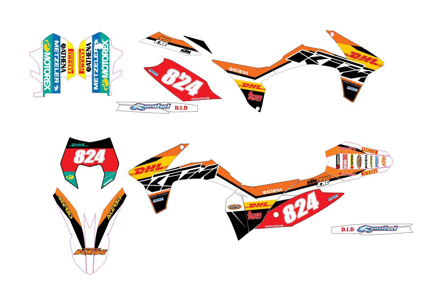 Pour une personnalisation encore plus poussée, vous pouvez customiser votre Kit déco KTM EXC / EXC-F (2012-2013) – DHL avec nos différentes options comme la base du Kit déco, la finition et pourquoi pas ajouter votre pseudo ou bien changer le numéro.