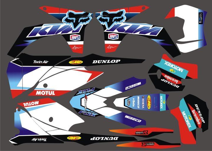 Kitdeco-moto.fr vous propose ce kit déco compatible pour KTM EXC / EXC-F 125 200 250 300 350 400 450 500 530 de 2012 à 2013!