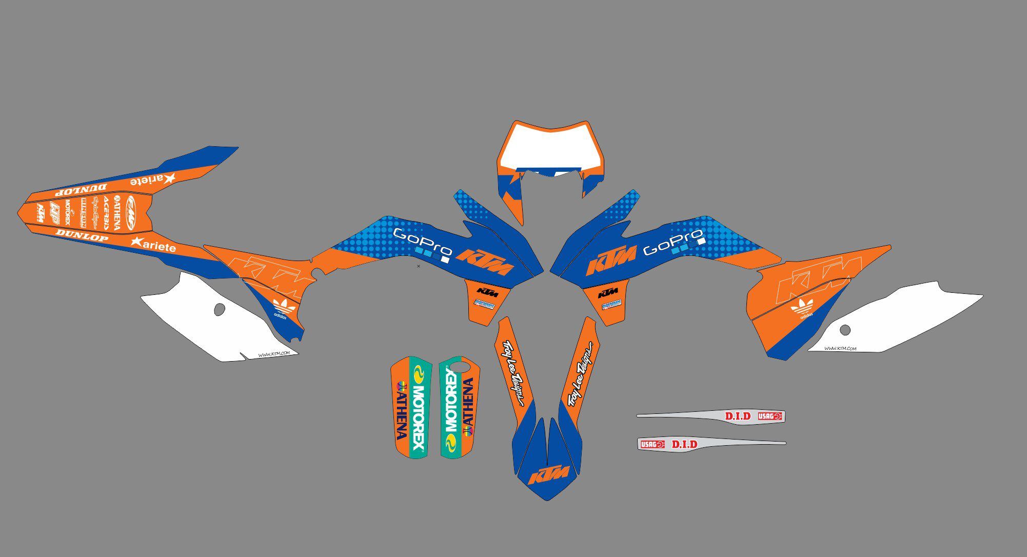 Kitdeco-moto.fr vous propose ce kit déco compatible pour KTM EXC / EXC-F 125 200 250 300 350 400 450 500 530 de 2014 à 2016 !