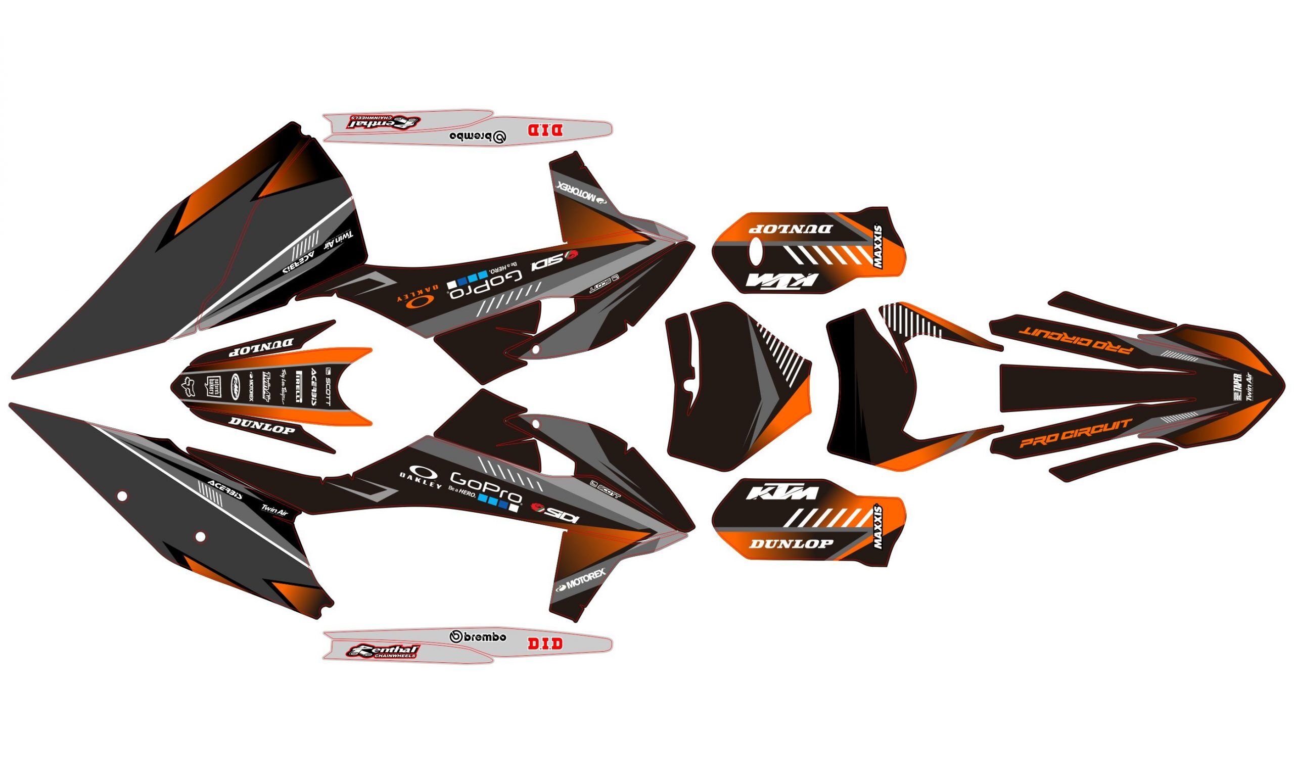 Kitdeco-moto.fr vous propose ce kit déco compatible pour KTM EXC / EXC-F 125 250 300 350 400 450 500 530 de 2020, 2021, 2022 et 2023 !