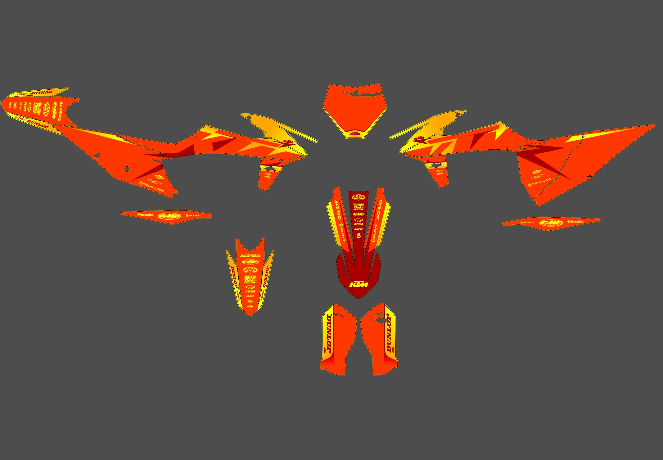 Kitdeco-moto.fr vous propose ce kit déco compatible pour KTM EXC / EXC-F 125 250 300 350 400 450 500 530 de 2020, 2021, 2022 et 2023 !