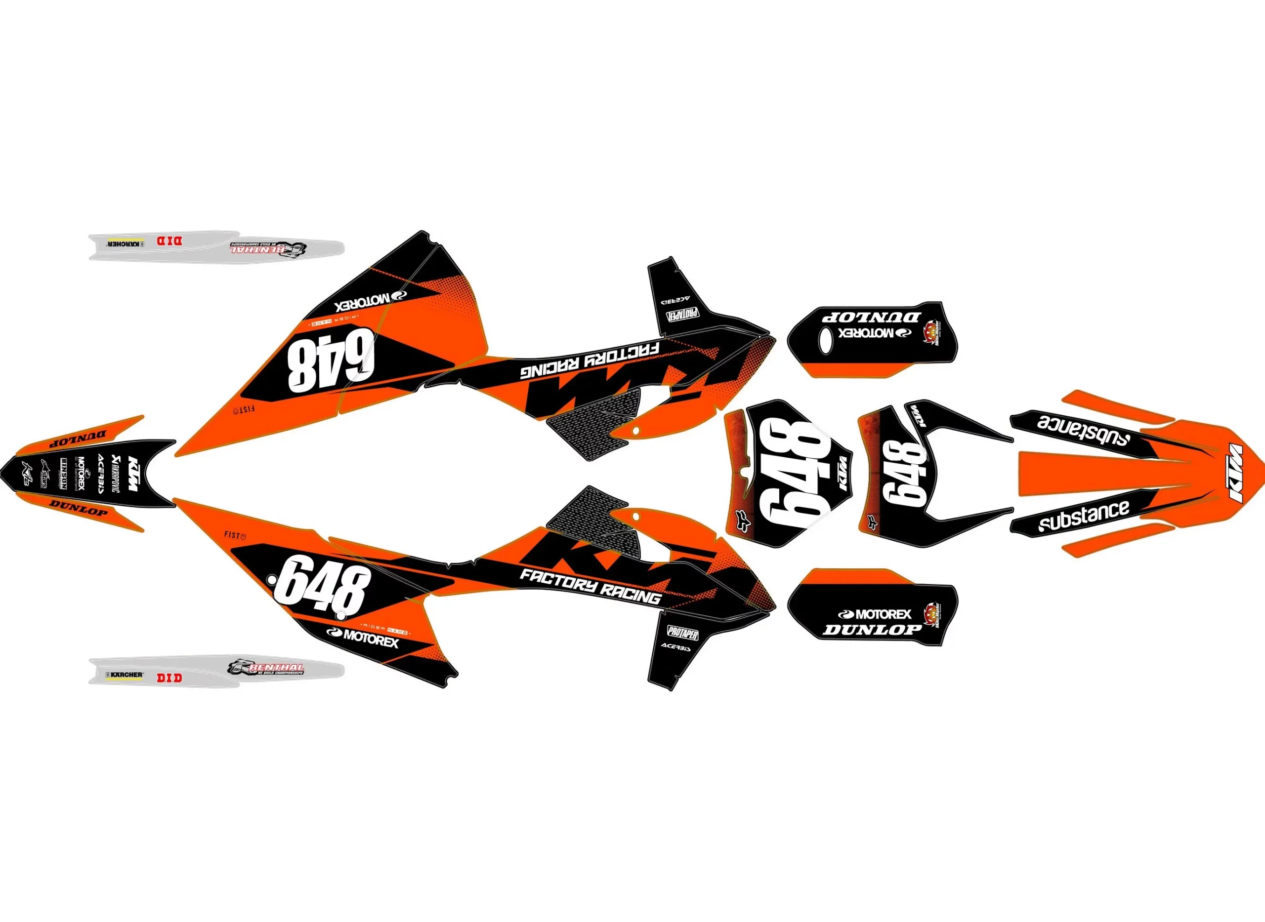 Pour une personnalisation encore plus poussée, vous pouvez customiser votre Kit déco KTM EXC / EXC-F (2020-2023) – Race Orange avec nos différentes options comme la base du Kit déco, la finition et pourquoi pas ajouter votre pseudo ou bien changer le numéro.