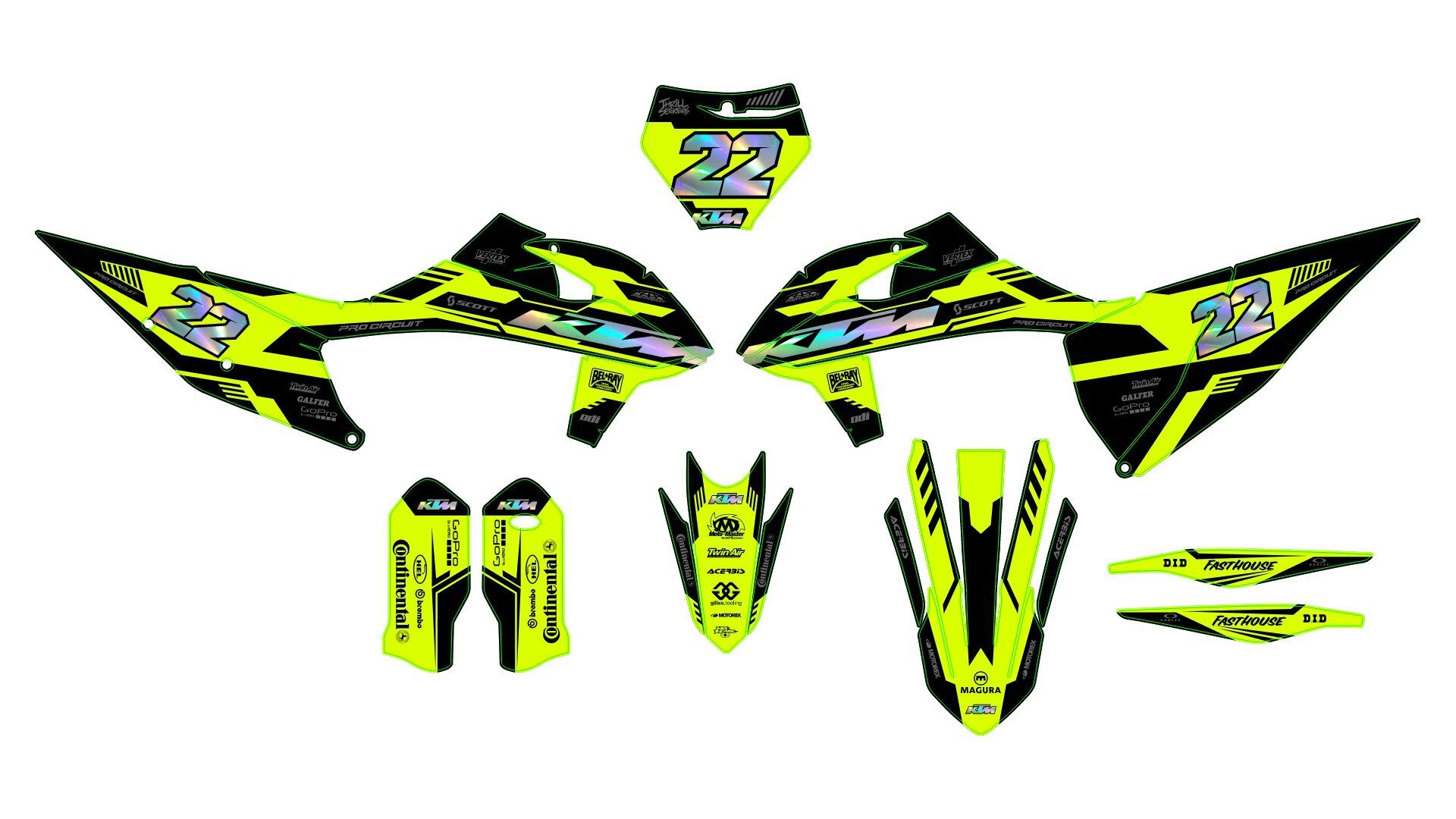 Kit déco KTM EXC / EXC-F (2020-2023) – Racing Jaune (Holographique en option)