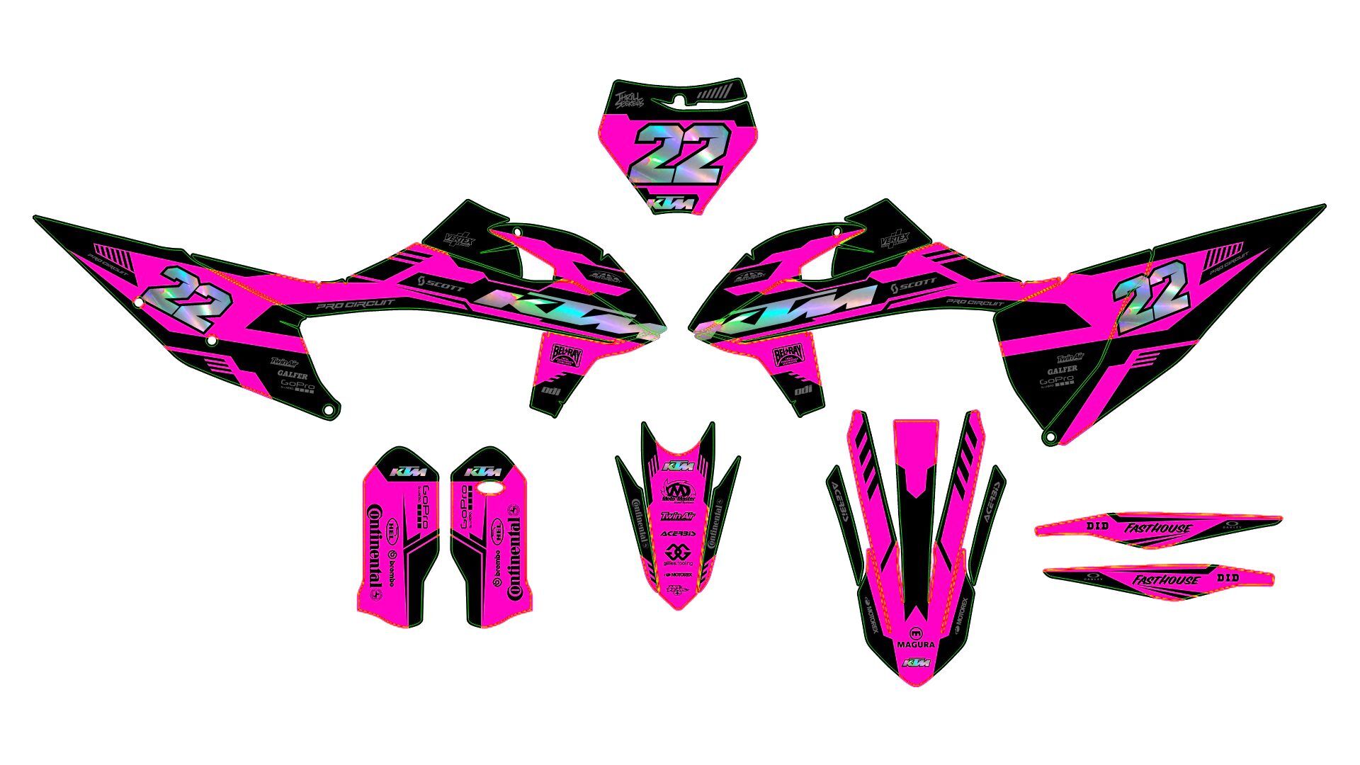 Kit déco KTM EXC / EXC-F (2020-2023) – Racing Rose (Holographique en option)