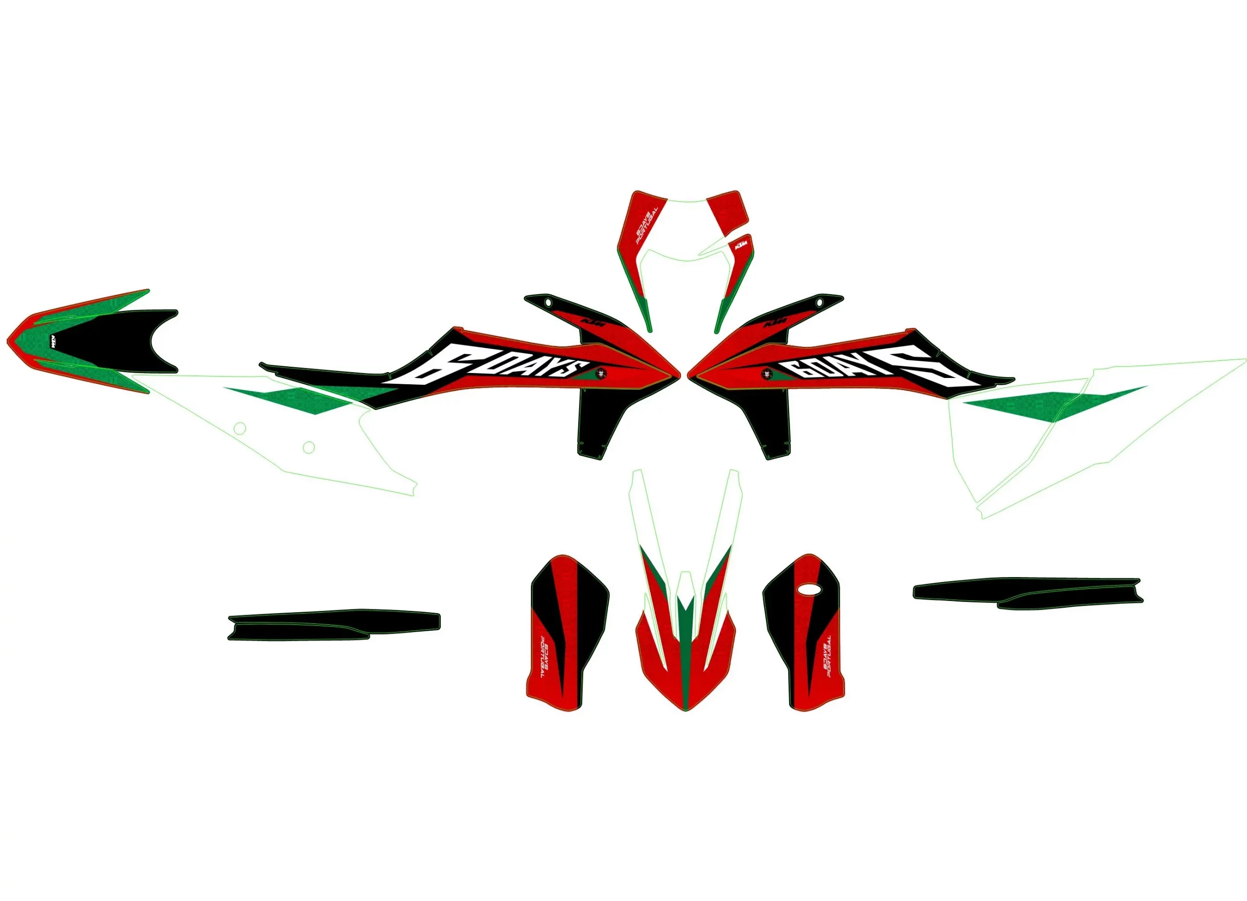 Pour une personnalisation encore plus poussée, vous pouvez customiser votre Kit déco KTM SX / SXF (2019-2022) – 6 DAYS avec nos différentes options comme la base du Kit déco, la finition et pourquoi pas ajouter votre pseudo ou bien changer le numéro.