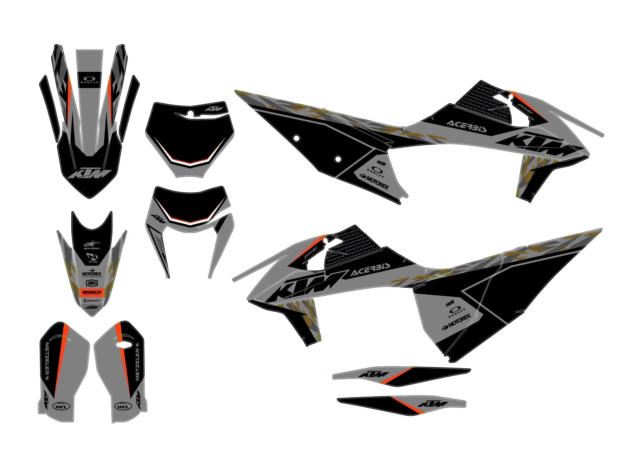 Avec le Kit déco KTM SX / SXF (2019-2022) – Low Gris, votre moto devient unique et vous aussi. Alors qu’attendez-vous pour donner du style à votre moto ? 🏍️