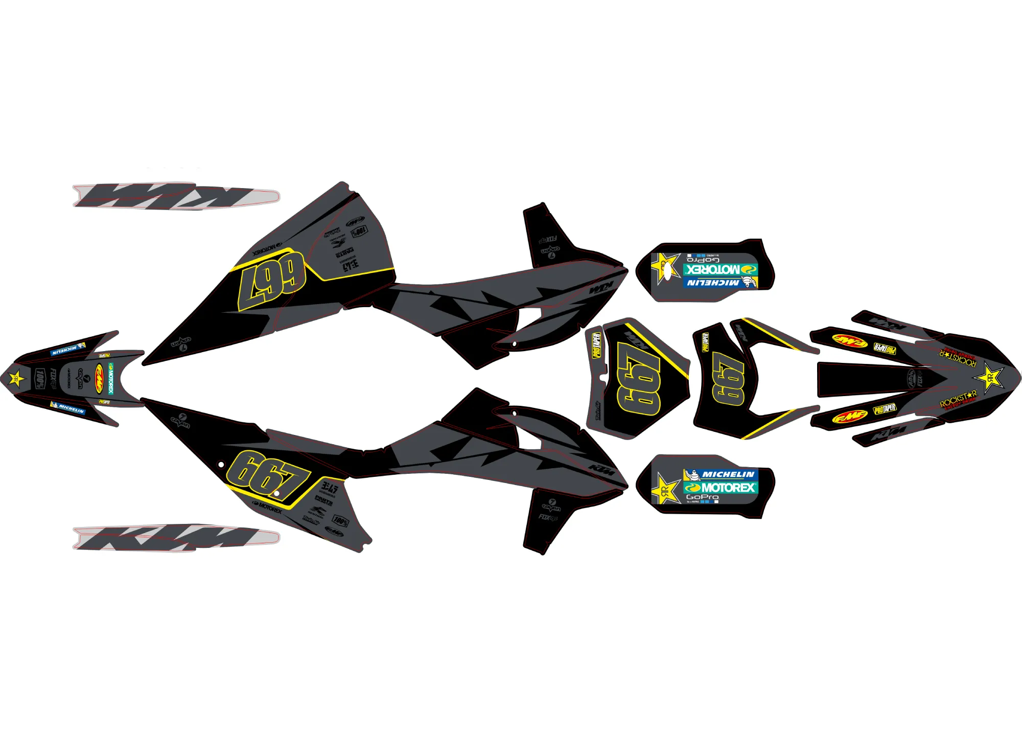 Avec le Kit déco KTM SX / SXF (2019-2022) – Rockstar, votre moto devient unique et vous aussi. Alors qu’attendez-vous pour donner du style à votre moto ? 🏍️