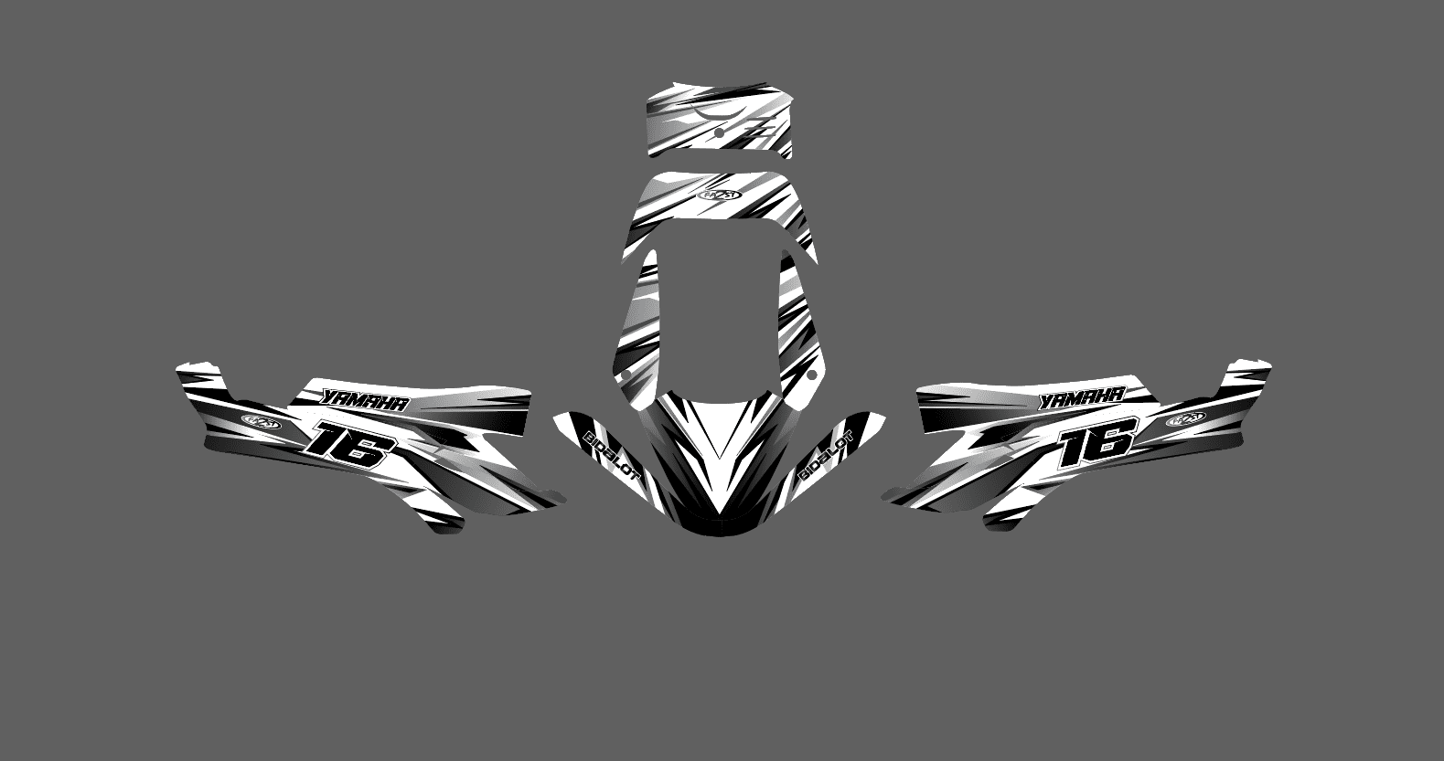 Pour une personnalisation encore plus poussée, vous pouvez customiser votre Kit déco MBK Booster (1990-2003) – Airon Blanc / Noir avec nos différentes options comme la base du Kit déco, la finition et pourquoi pas ajouter votre pseudo ou bien changer le numéro.
