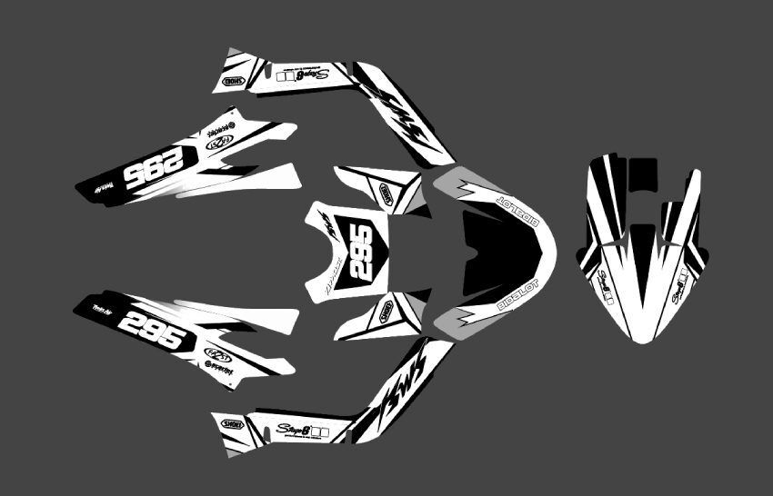 Pour une personnalisation encore plus poussée, vous pouvez customiser votre Kit déco MBK Booster (2004-2018) – Racing Blanc avec nos différentes options comme la base du Kit déco, la finition et pourquoi pas ajouter votre pseudo ou bien changer le numéro.