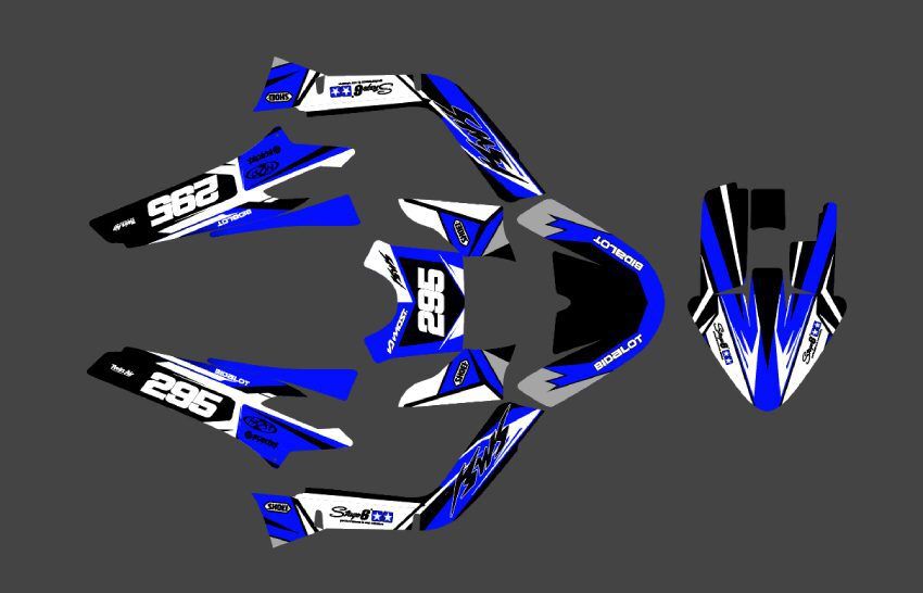 Pour une personnalisation encore plus poussée, vous pouvez customiser votre Kit déco MBK Booster (2004-2018) – Racing Bleu avec nos différentes options comme la base du Kit déco, la finition et pourquoi pas ajouter votre pseudo ou bien changer le numéro.
