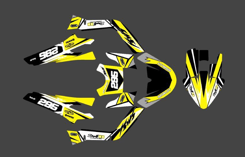 Pour une personnalisation encore plus poussée, vous pouvez customiser votre Kit déco MBK Booster (2004-2018) – Racing Jaune avec nos différentes options comme la base du Kit déco, la finition et pourquoi pas ajouter votre pseudo ou bien changer le numéro.