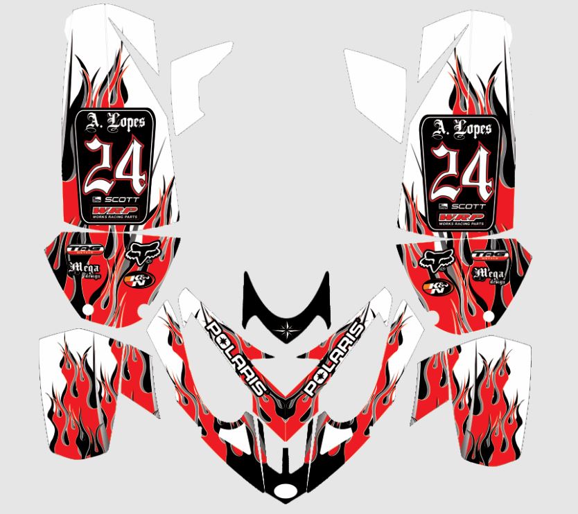 Kitdeco-moto.fr vous propose ce kit déco compatible pour Polaris 500 Predator !