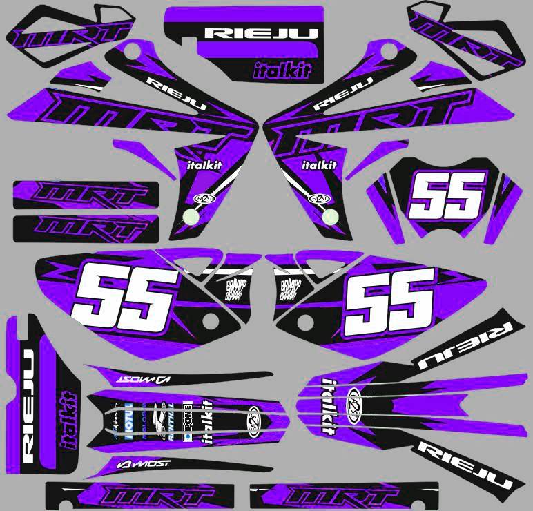 Pour une personnalisation encore plus poussée, vous pouvez customiser votre Kit déco Rieju 50 MRT – Craft Violet avec nos différentes options comme la base du Kit déco, la finition et pourquoi pas ajouter votre pseudo ou bien changer le numéro.