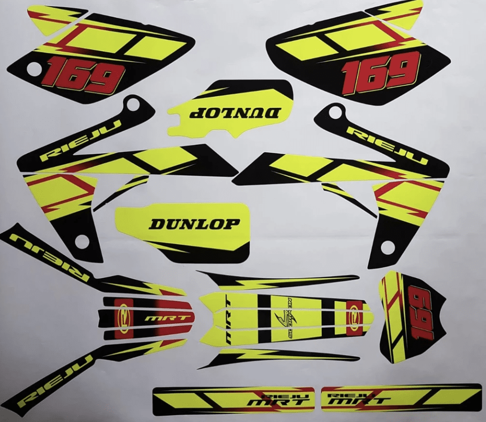 Pour une personnalisation encore plus poussée, vous pouvez customiser votre Kit déco Rieju 50 MRT – Jaune Fluo avec nos différentes options comme la base du Kit déco, la finition et pourquoi pas ajouter votre pseudo ou bien changer le numéro.