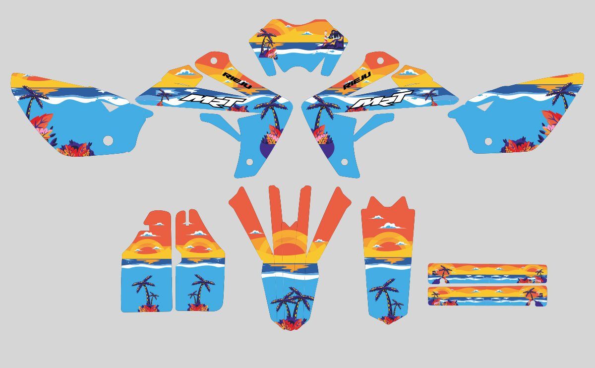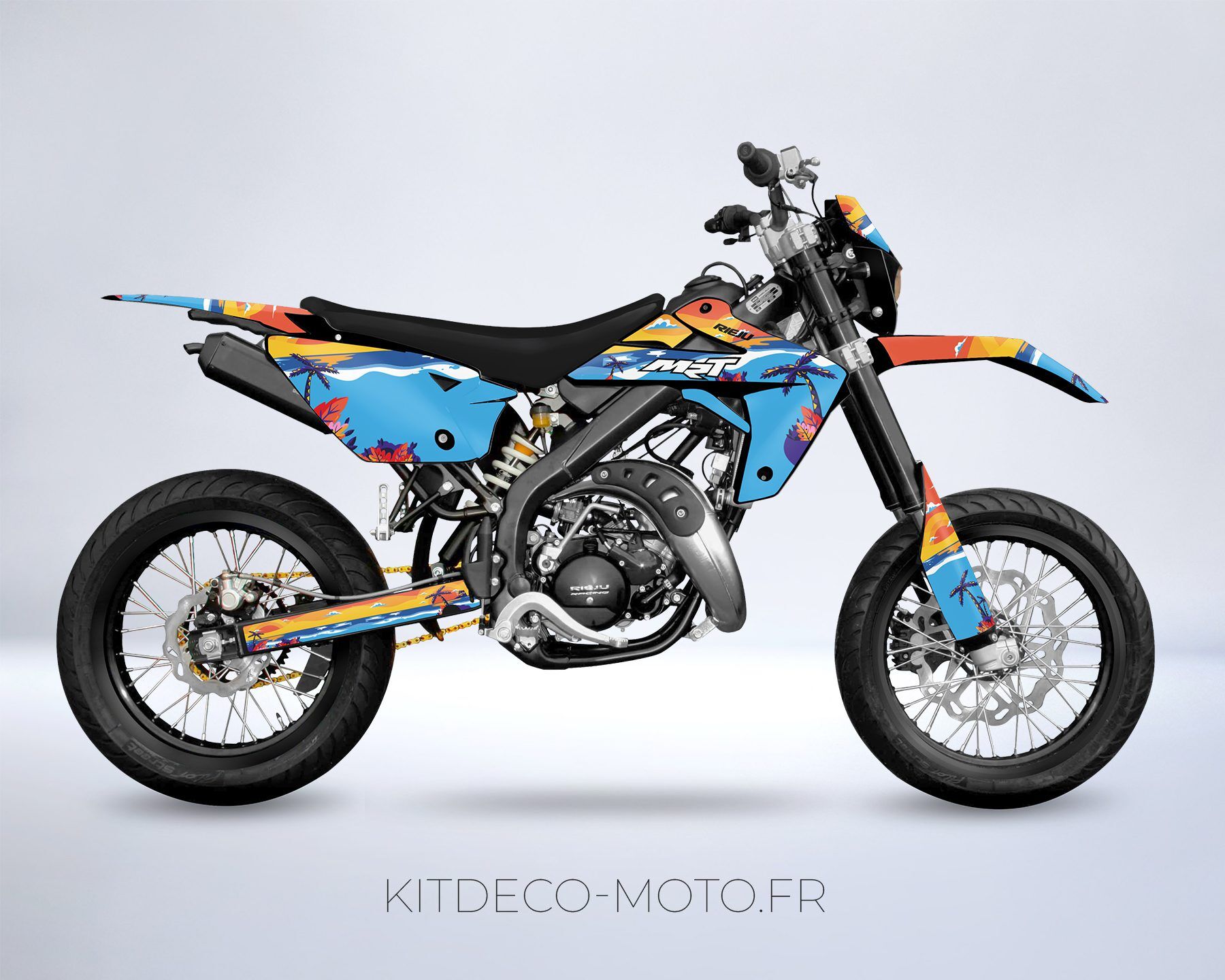 Avec le Kit déco Rieju 50 MRT – Plage, votre moto devient unique et vous aussi. Alors qu’attendez-vous pour donner du style à votre moto ? 🏍️