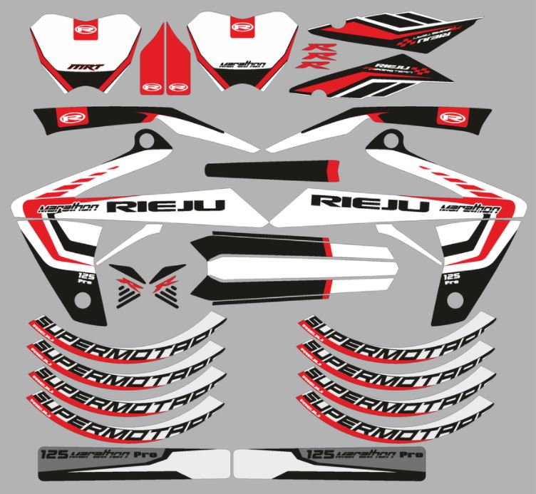 Kitdeco-moto.fr vous propose ce kit déco compatible pour 50 Rieju MRT / MRT Pro / Trophy !