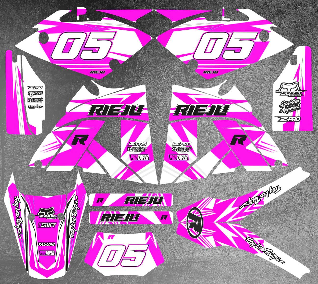 Pour une personnalisation encore plus poussée, vous pouvez customiser votre Kit déco Rieju 50 MRX – Craft Blanc / Rose avec nos différentes options comme la base du Kit déco, la finition et pourquoi pas ajouter votre pseudo ou bien changer le numéro.