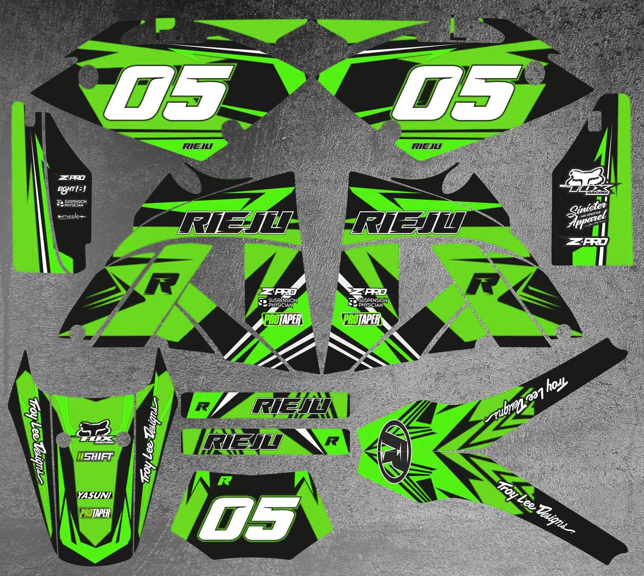 Pour une personnalisation encore plus poussée, vous pouvez customiser votre Kit déco Rieju 50 MRX – Craft Vert avec nos différentes options comme la base du Kit déco, la finition et pourquoi pas ajouter votre pseudo ou bien changer le numéro.