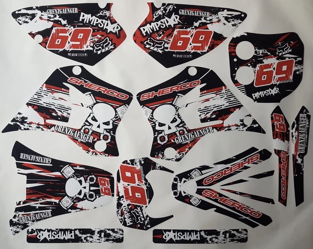Kitdeco-moto.fr vous propose ce kit déco compatible pour Sherco HRD 2003 !