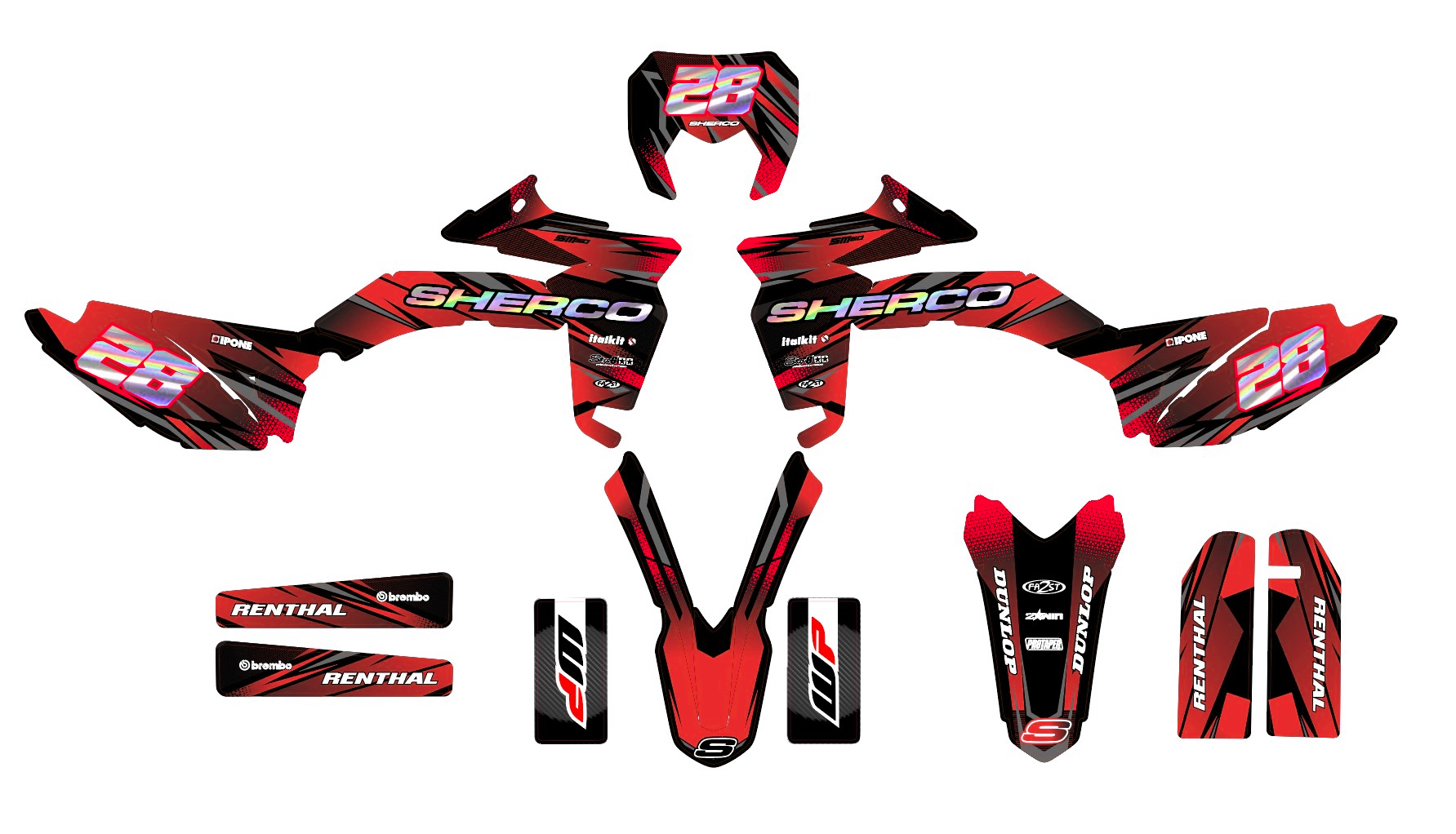 Kitdeco-moto.fr vous propose ce kit déco compatible pour Sherco SM !
