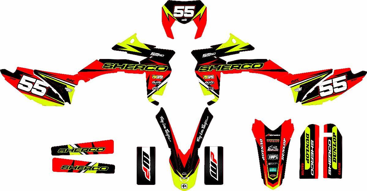 Kitdeco-moto.fr vous propose ce kit déco compatible pour Sherco SM !