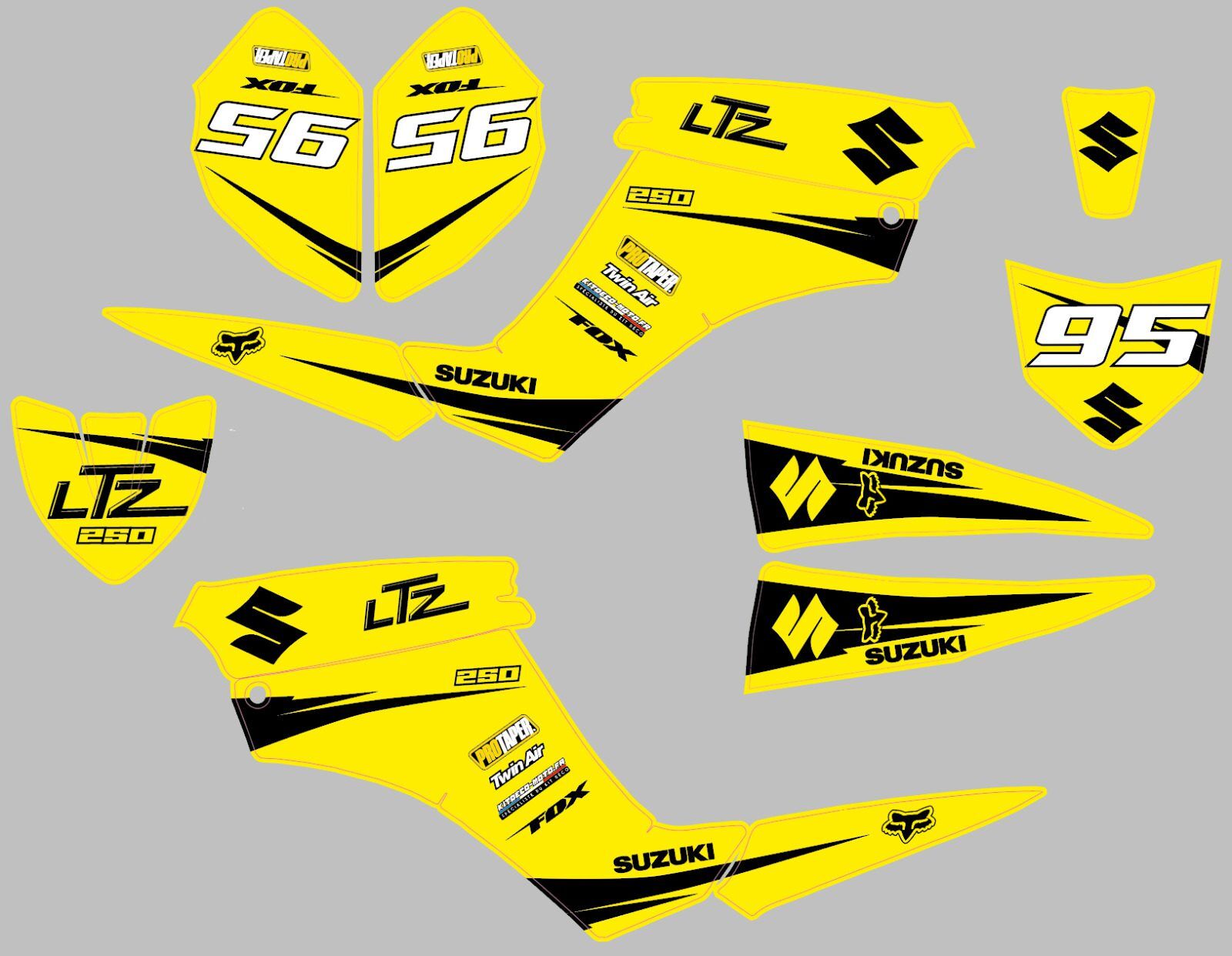 Kitdeco-moto.fr vous propose ce kit déco compatible pour Suzuki 250 LTZ !