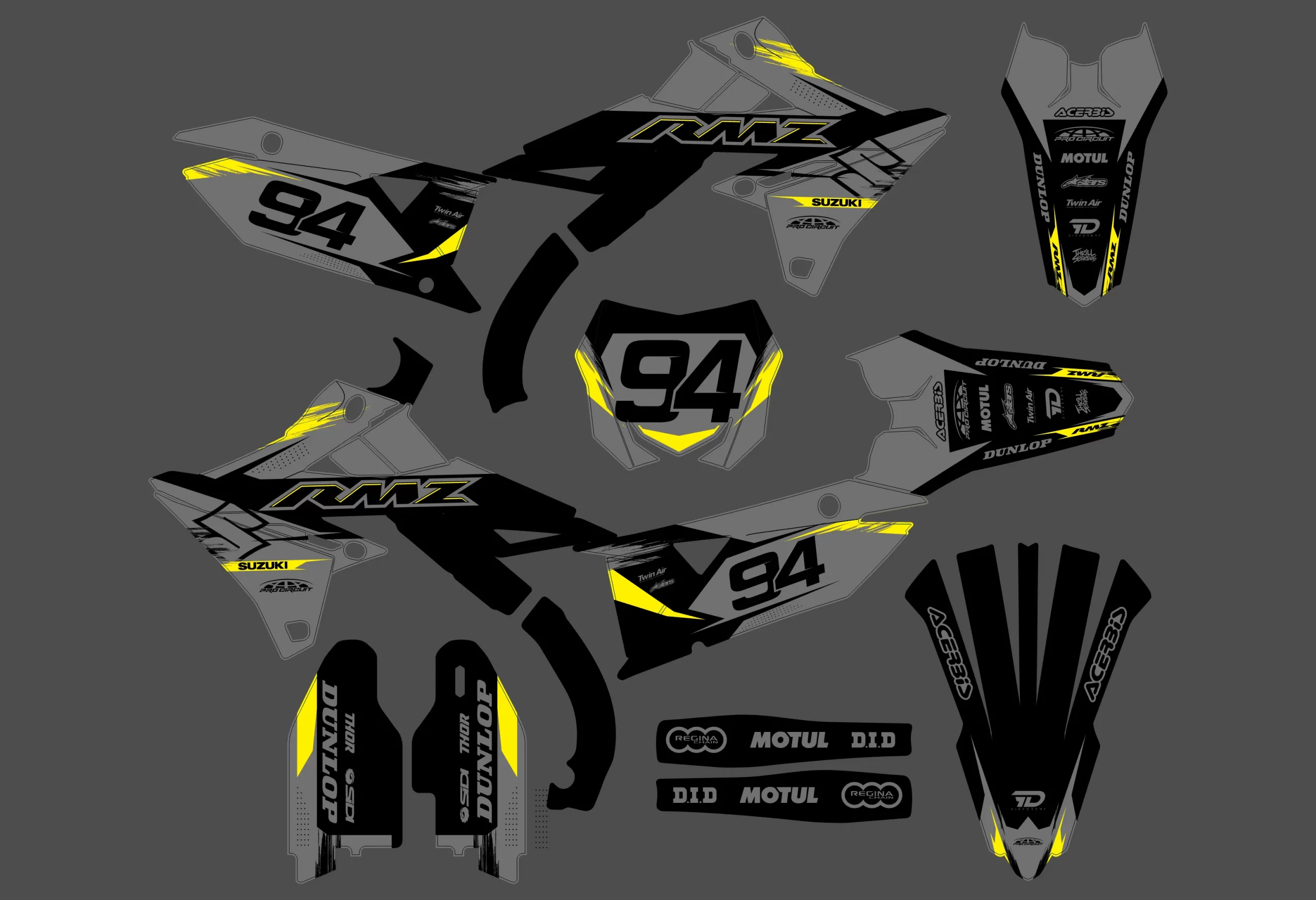 Kitdeco-moto.fr vous propose ce kit déco compatible pour Suzuki 250 RMZ de 2019 à 2024 !