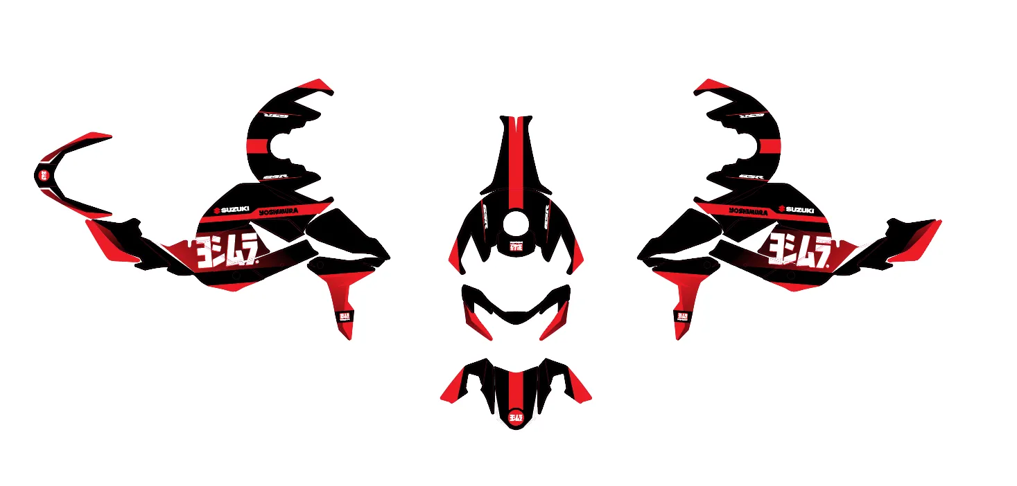 Pour une personnalisation encore plus poussée, vous pouvez customiser votre Kit déco Suzuki GSR 750 (2011-2017) – Yoshimura avec nos différentes options comme la base du Kit déco, la finition et pourquoi pas ajouter votre pseudo ou bien changer le numéro.