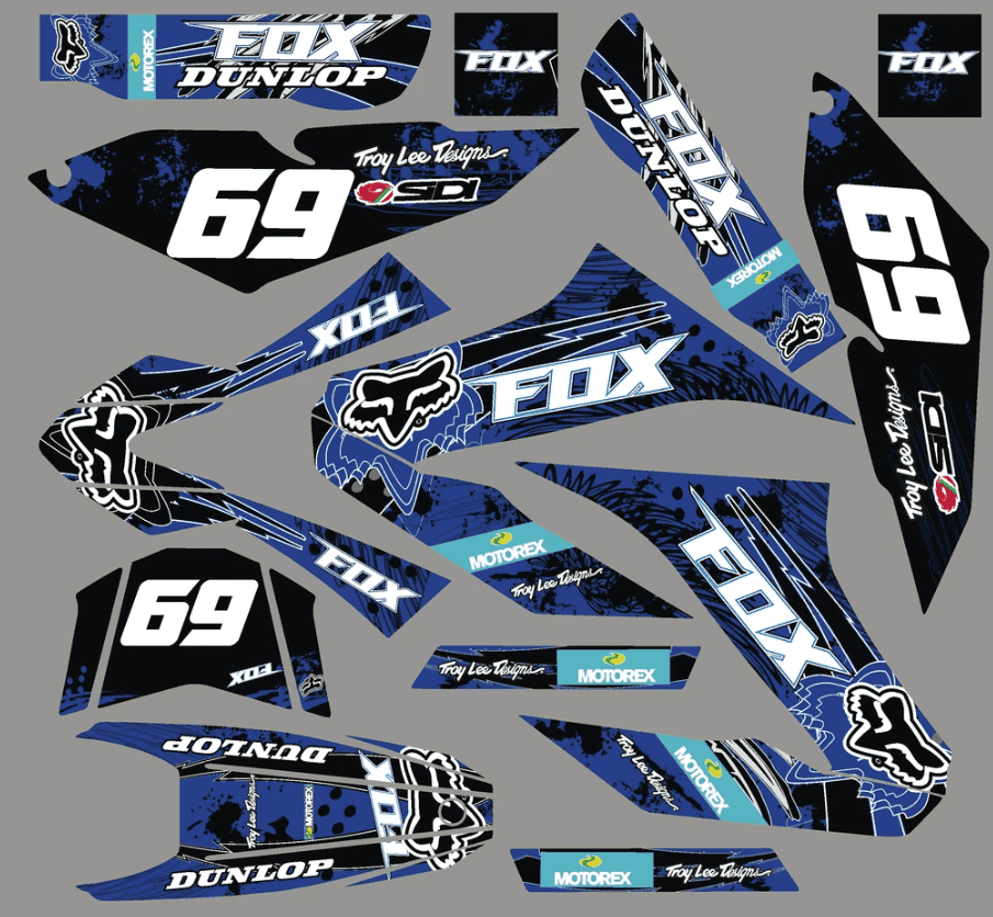 Pour une personnalisation encore plus poussée, vous pouvez customiser votre Kit déco Yamaha WR 125 – Fox Blue avec nos différentes options comme la base du Kit déco, la finition et pourquoi pas ajouter votre pseudo ou bien changer le numéro.