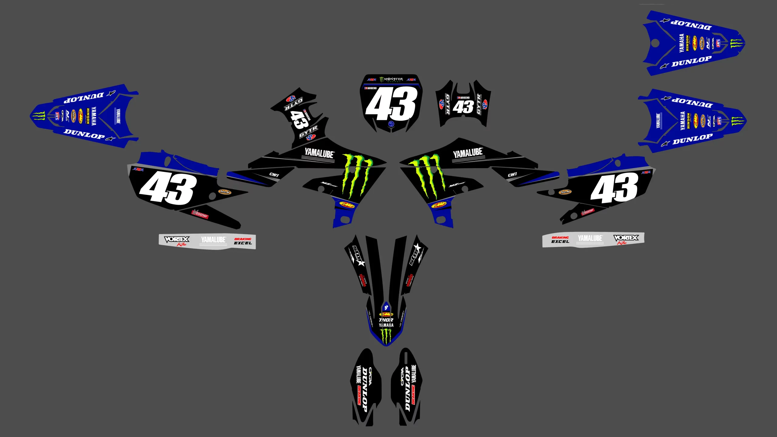 Pour une personnalisation encore plus poussée, vous pouvez customiser votre Kit déco Yamaha 250 YZF (2019-2023) – Monster #4 avec nos différentes options comme la base du Kit déco, la finition et pourquoi pas ajouter votre pseudo ou bien changer le numéro.