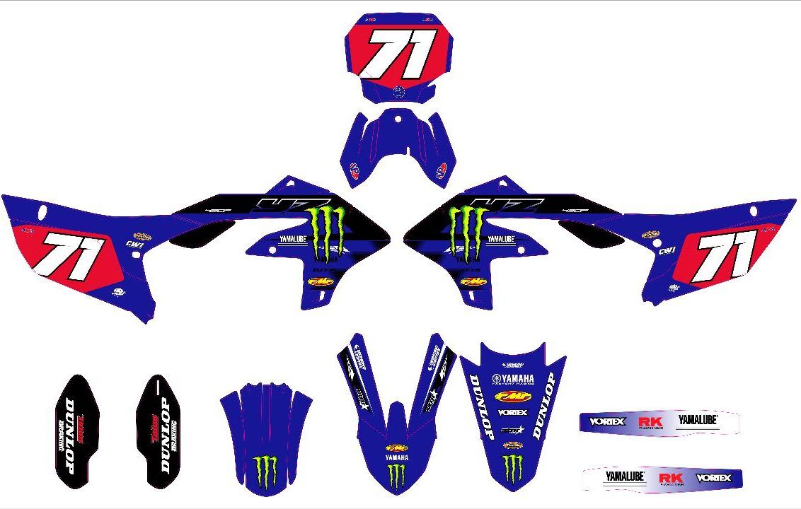 Pour une personnalisation encore plus poussée, vous pouvez customiser votre Kit déco Yamaha 250 YZF (2024) – Monster #3 avec nos différentes options comme la base du Kit déco, la finition et pourquoi pas ajouter votre pseudo ou bien changer le numéro.