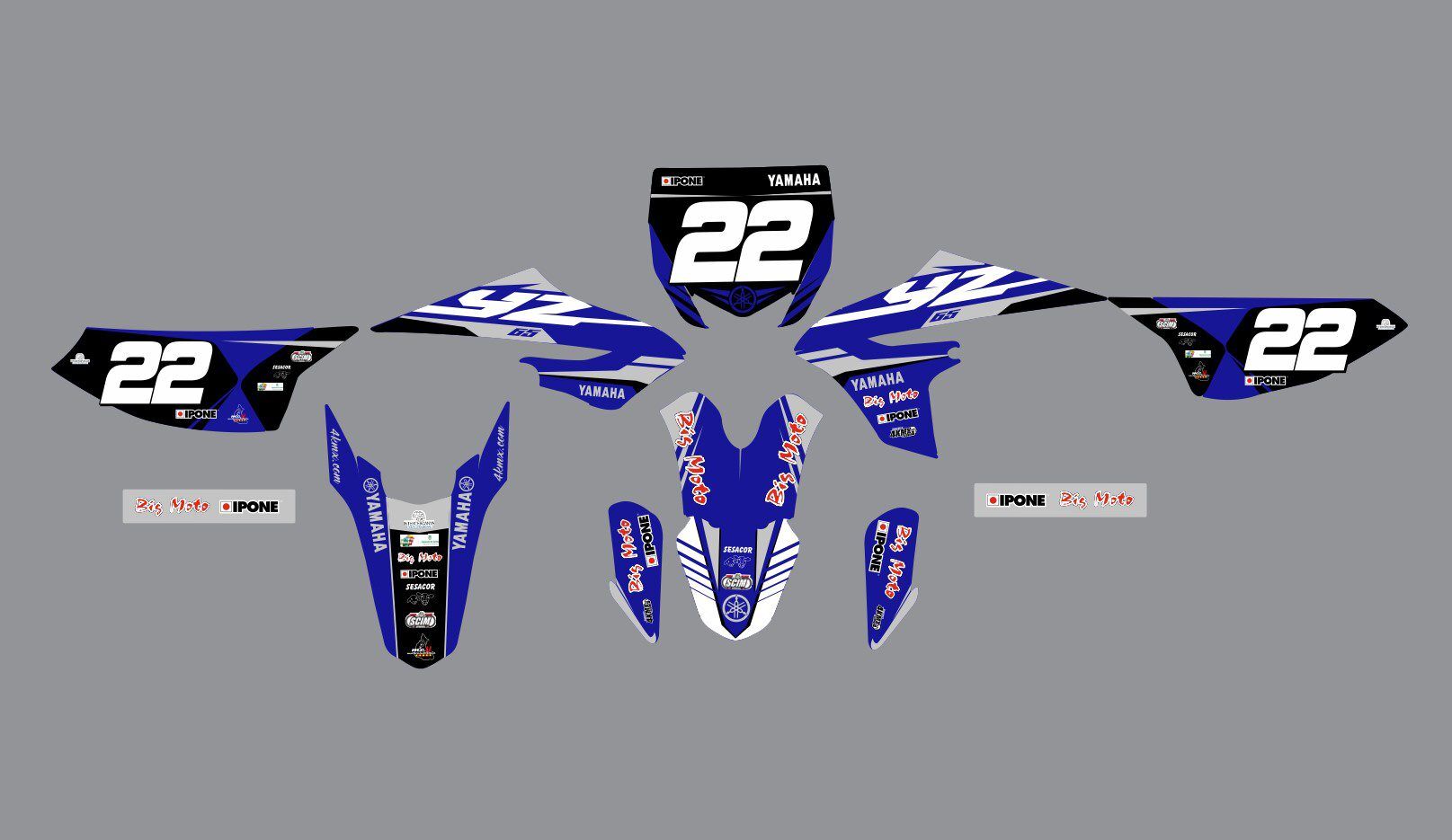 Pour une personnalisation encore plus poussée, vous pouvez customiser votre Kit déco Yamaha 65 YZ – Factory avec nos différentes options comme la base du Kit déco, la finition et pourquoi pas ajouter votre pseudo ou bien changer le numéro.