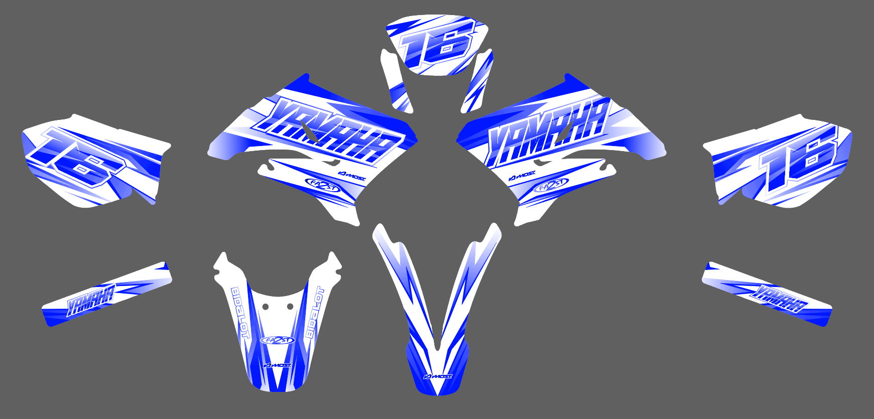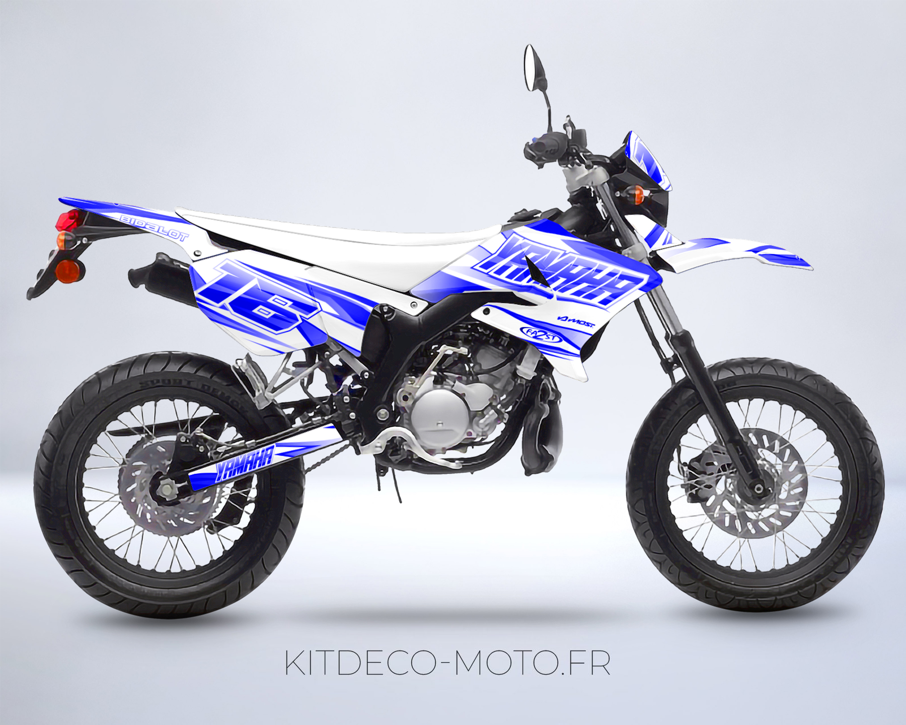Kit déco Yamaha DT 50 – Airon Blanc / Bleu