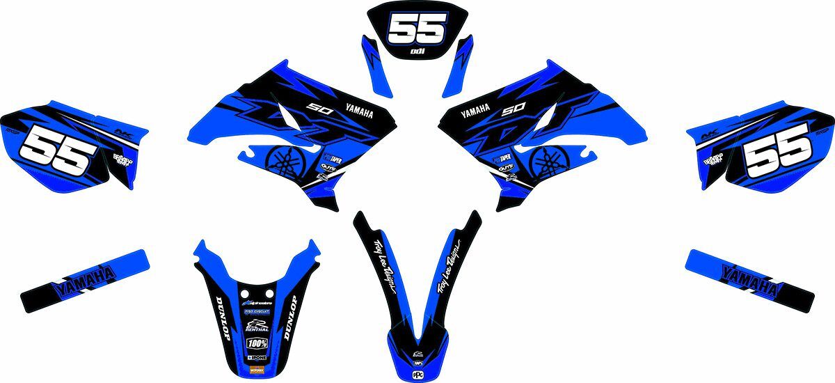 Pour une personnalisation encore plus poussée, vous pouvez customiser votre Kit déco Yamaha DT 50 – Craft Bleu avec nos différentes options comme la base du Kit déco, la finition et pourquoi pas ajouter votre pseudo ou bien changer le numéro.