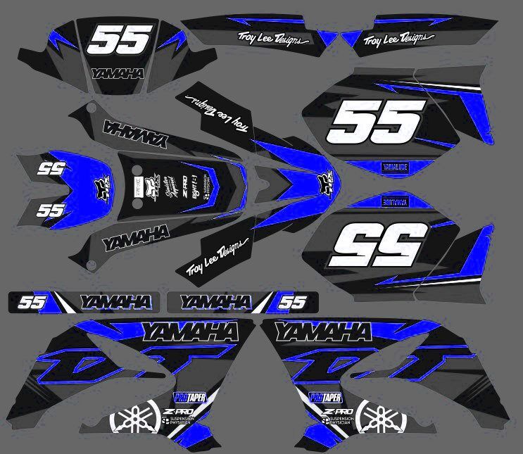 Pour une personnalisation encore plus poussée, vous pouvez customiser votre Kit déco Yamaha DT 50 – Craft Gris / Bleu avec nos différentes options comme la base du Kit déco, la finition et pourquoi pas ajouter votre pseudo ou bien changer le numéro.