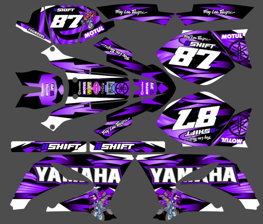 Pour une personnalisation encore plus poussée, vous pouvez customiser votre Kit déco Yamaha DT 50 – Moto Violet avec nos différentes options comme la base du Kit déco, la finition et pourquoi pas ajouter votre pseudo ou bien changer le numéro.