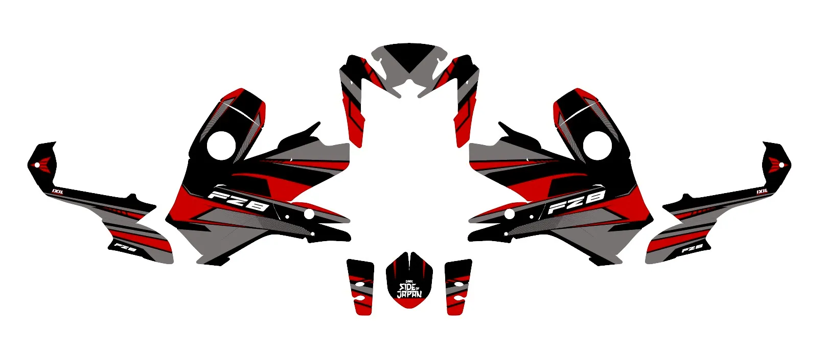 Pour une personnalisation encore plus poussée, vous pouvez customiser votre Kit déco Yamaha FZ8 – Factory Rouge avec nos différentes options comme la base du Kit déco, la finition et pourquoi pas ajouter votre pseudo ou bien changer le numéro.