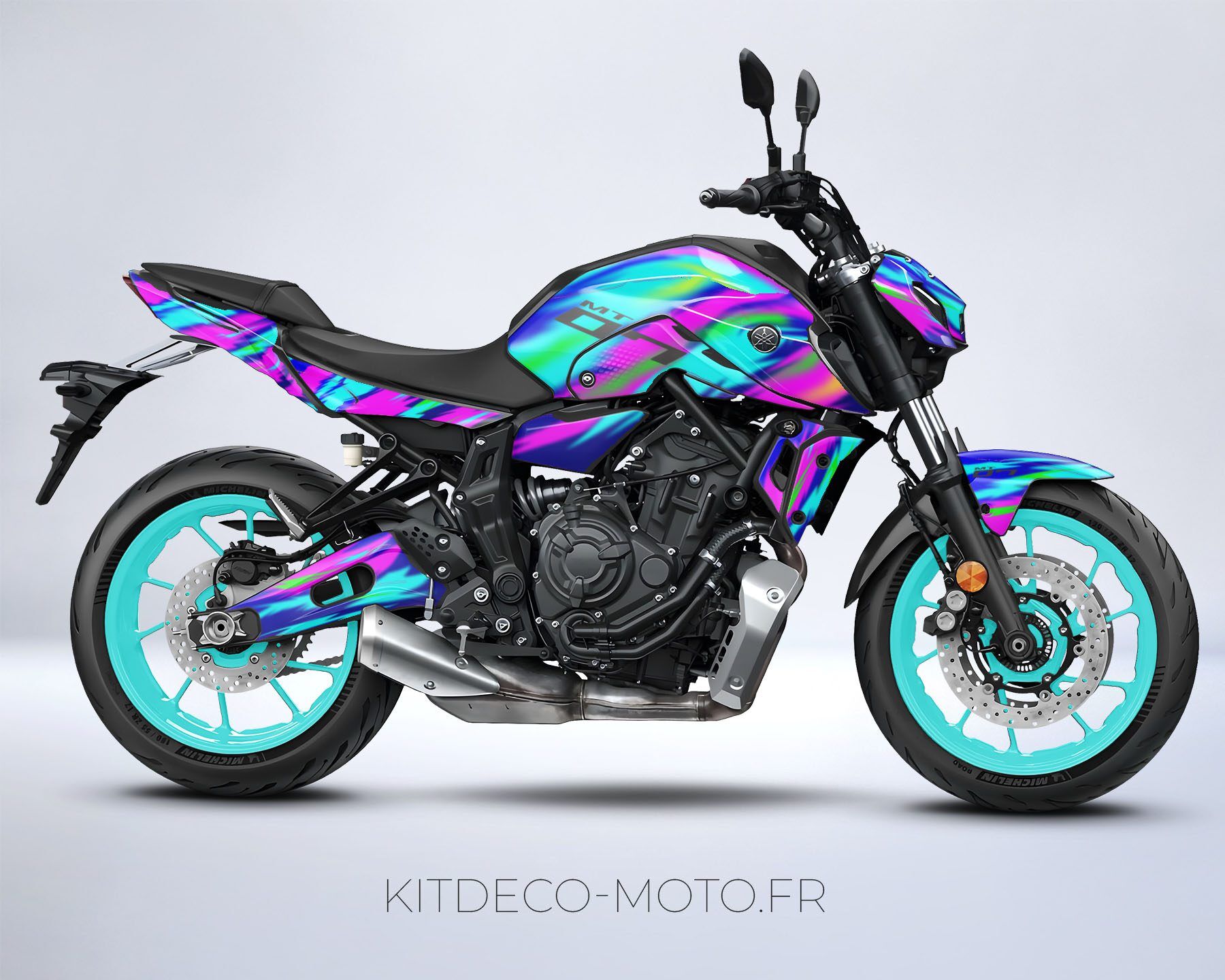 Avec le Kit déco Yamaha MT 07 – Pétrole, votre moto devient unique et vous aussi. Alors qu’attendez-vous pour donner du style à votre moto ? 🏍️