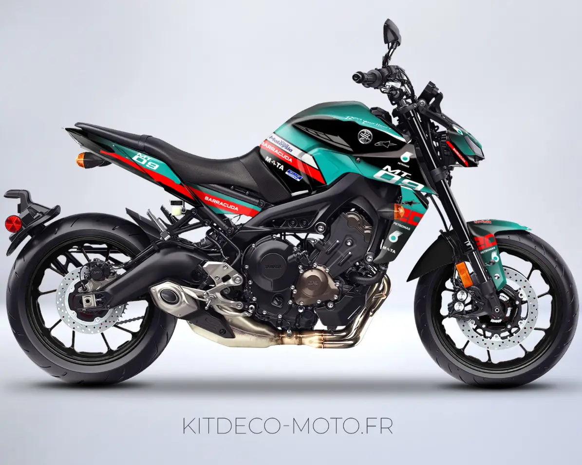 Avec le Kit déco Yamaha MT 09 – Petronas, votre moto devient unique et vous aussi. Alors qu’attendez-vous pour donner du style à votre moto ? 🏍️